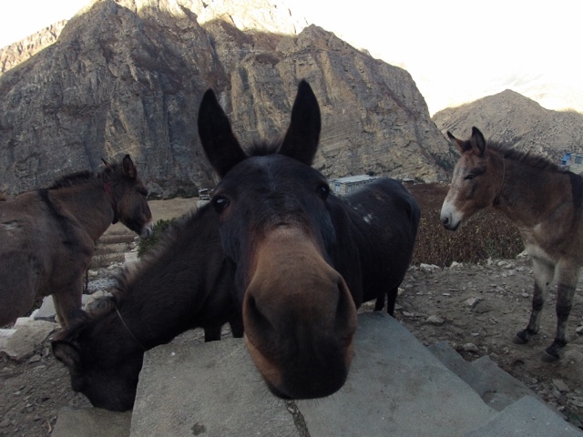 Mules are packed early morning and one of them seems to enjoy the GoPro.